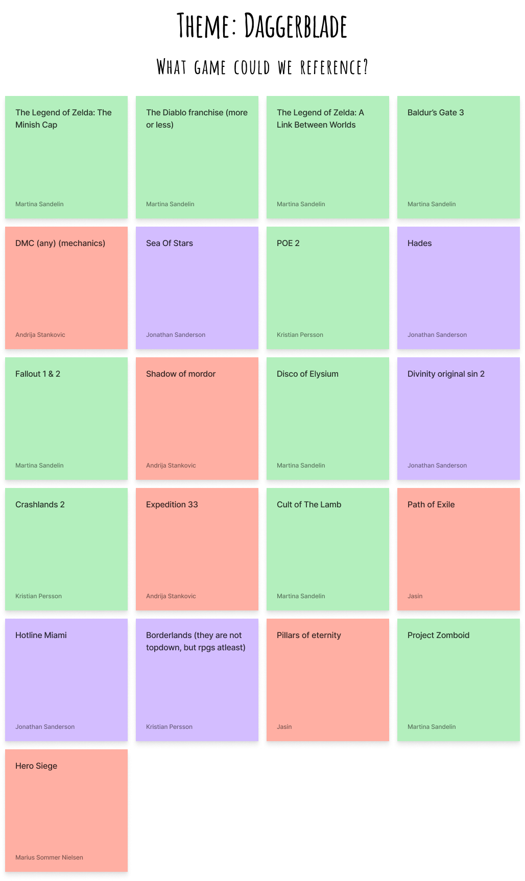 Our reference game were Project Zomoid, Escape from Duckov and mainly The Swords of Ditto.